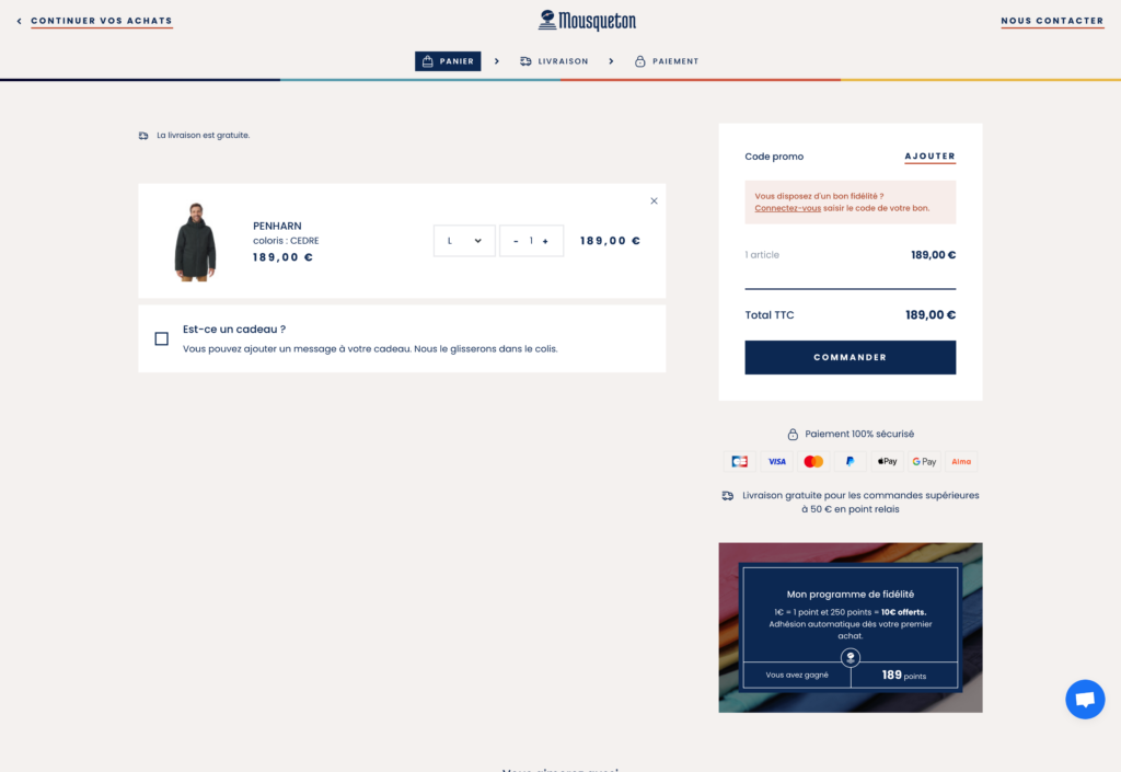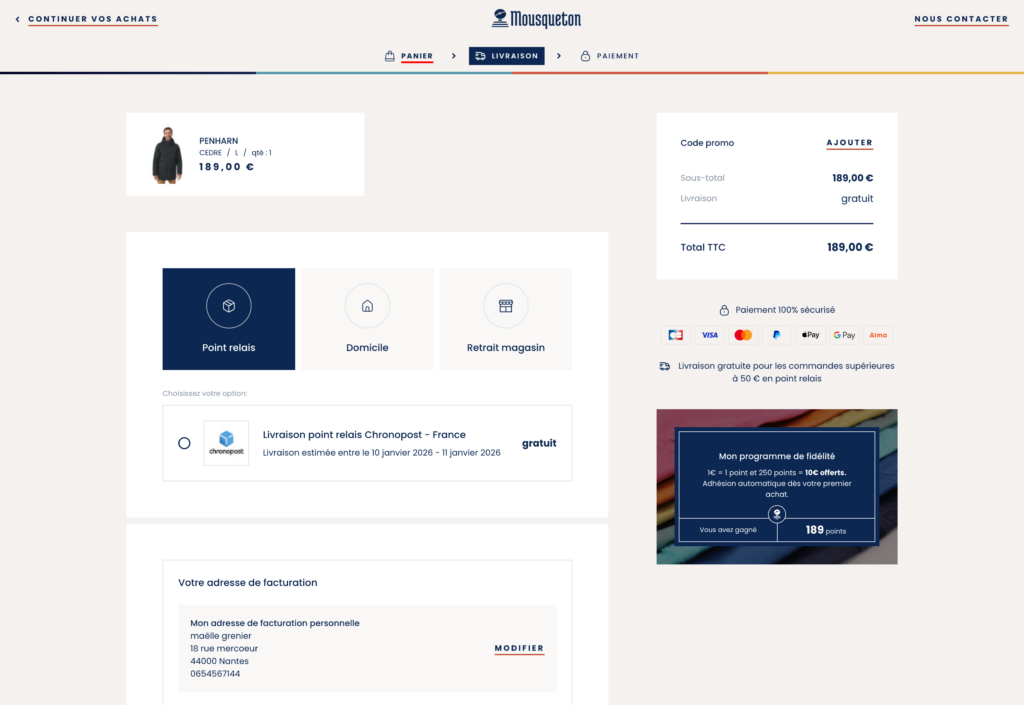Le parcours de commande est le cœur de l’expérience e‑commerce. Pour Mousqueton, il s’agissait de lever tous les obstacles et de rendre chaque étape naturelle et motivante pour le client.